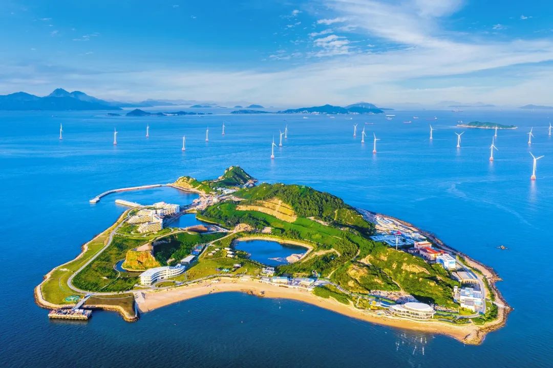 三角岛及桂山海上风电场鸟瞰图。(南方电网广东珠海供电局供图)