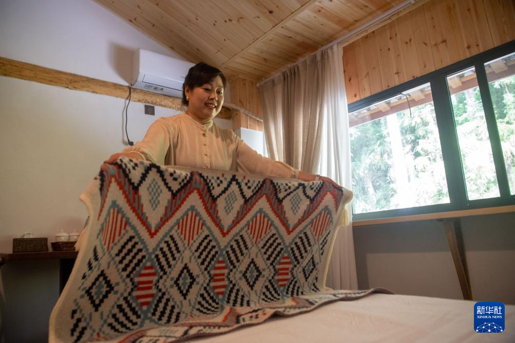 6月11日,在大金佛山环山趣驾路线上的大有镇水源村桥边小院民宿,工作人员在整理客房。