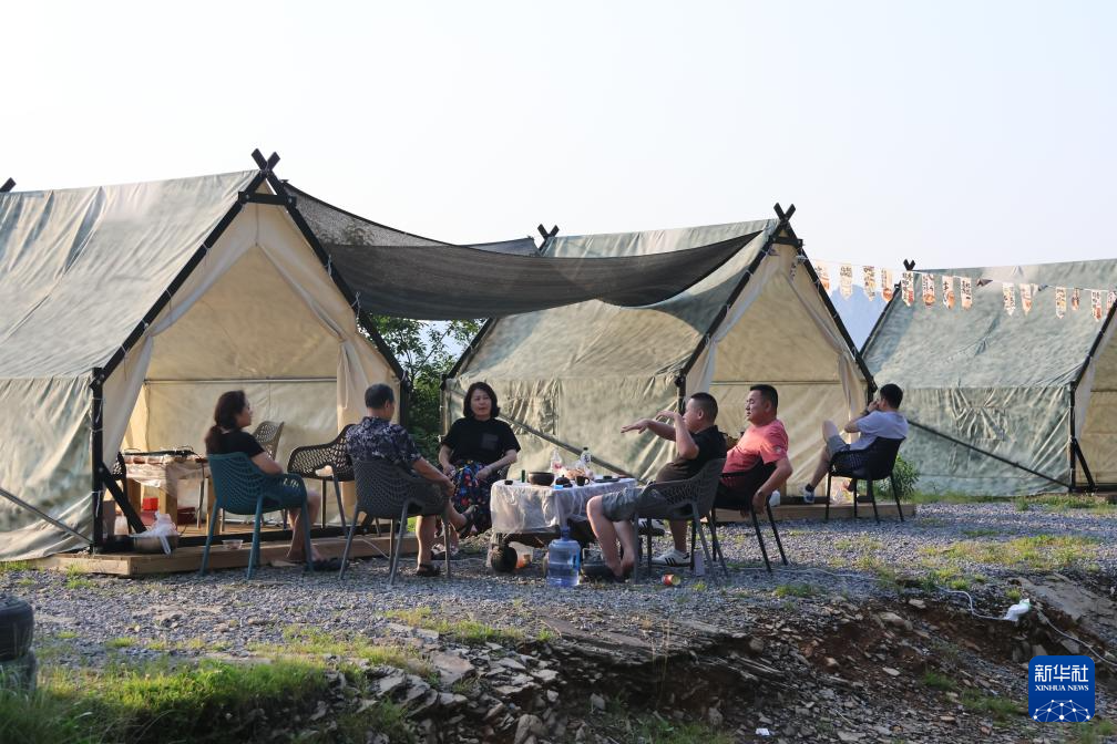 6月11日,在大金佛山环山趣驾路线上的风吹岭景点,游客在野营基地休息。