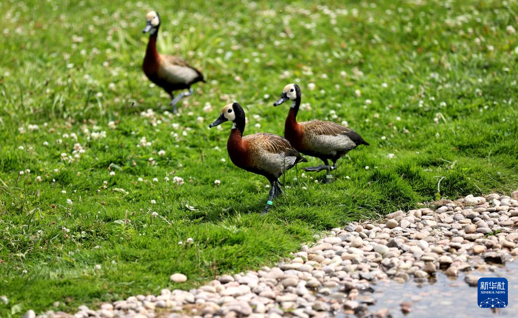 这是在英国伦敦湿地中心拍摄的白脸树鸭(6月20日摄)。