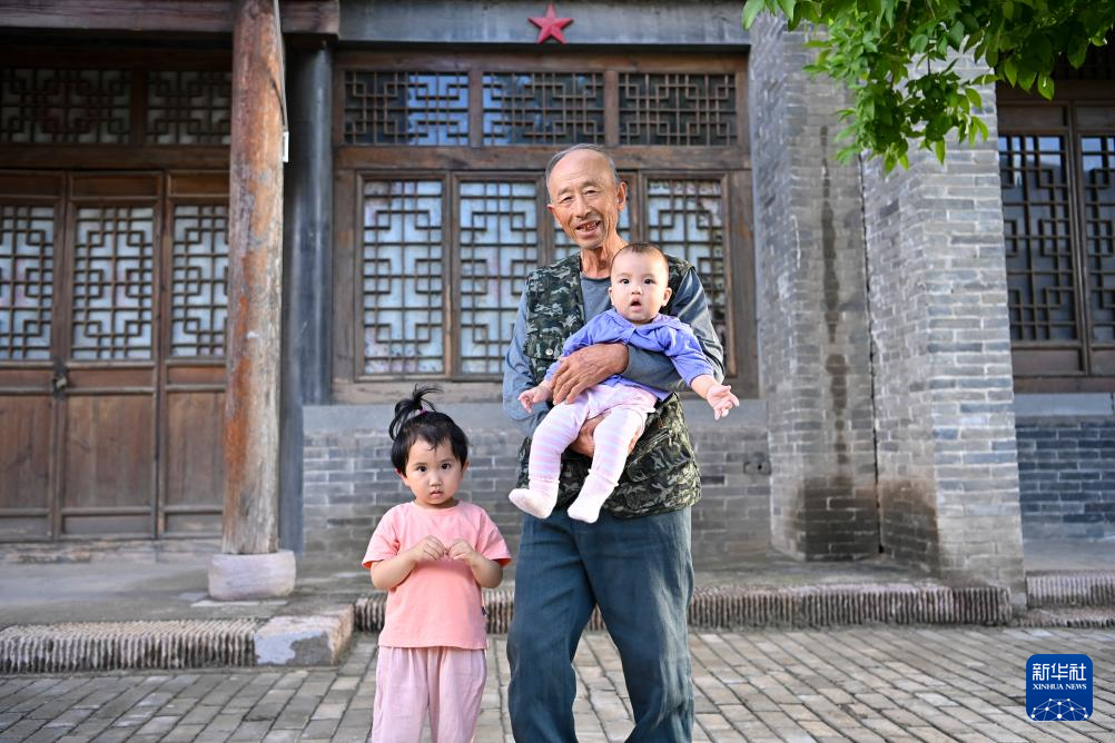 村民在山西省吕梁市兴县蔡家崖村留影(6月30日摄)。