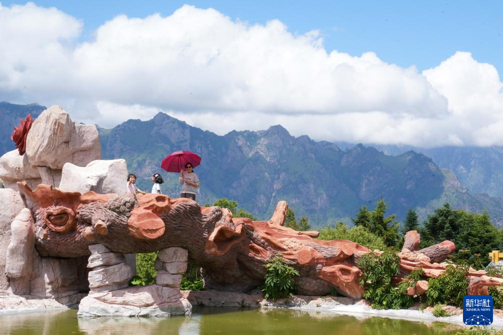 游客在舟曲拉尕山上游玩(7月12日摄)。