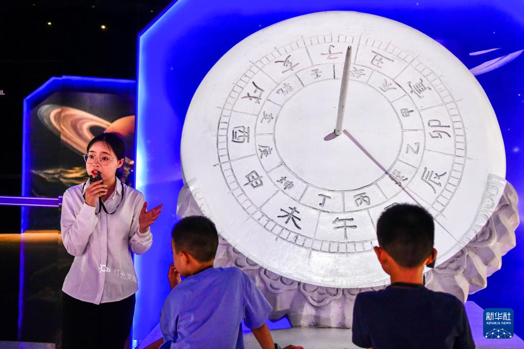 讲解员在贵州平塘国际天文体验馆给参观者讲解天文知识(7月10日摄)。