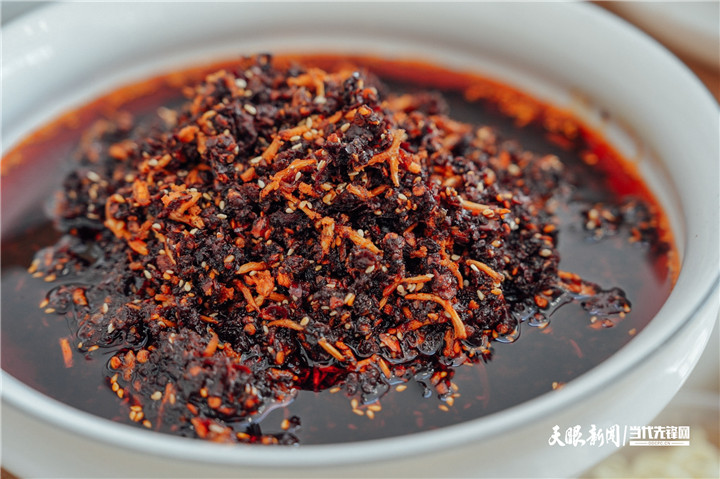 走进遵义虾子镇的辣椒生产企业,扑鼻而来的香气不断刺激着鼻腔和味蕾。顺着生产车间,7000多坛正在发酵的辣椒整齐排列,每坛容量一吨。企业负责人介绍,使用传统陶坛发酵工艺和LSN发酵技术生产的发酵型辣椒具有零添加防腐剂、低盐、含活性乳酸菌等特点,保持了原本风味及良好脆度,同时采用数据溯源保证品质。另一边,在自动化程度达98%的自动化生产线上,小小玻璃罐里,折耳根和辣椒碰撞成风味独特的折耳根油辣椒,风靡全球。