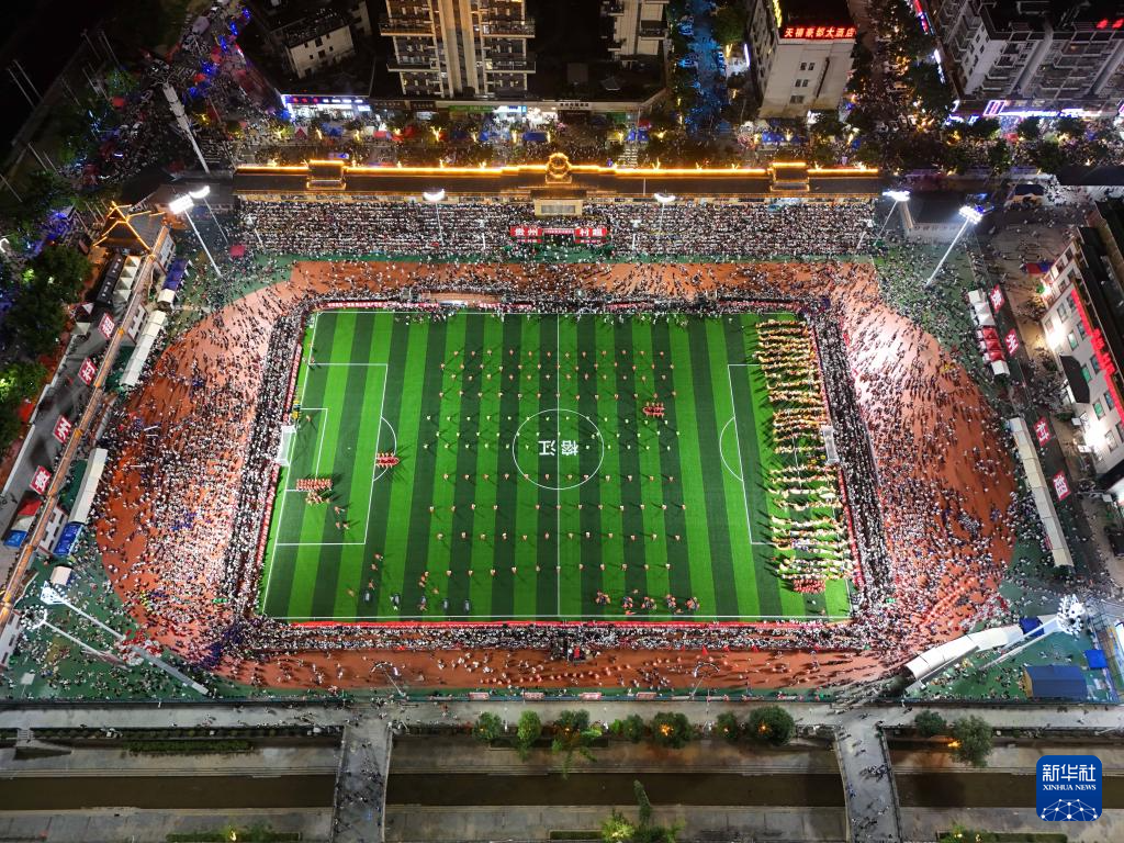 7月26日,大量观众来到榕江“村超”球场(无人机照片)。