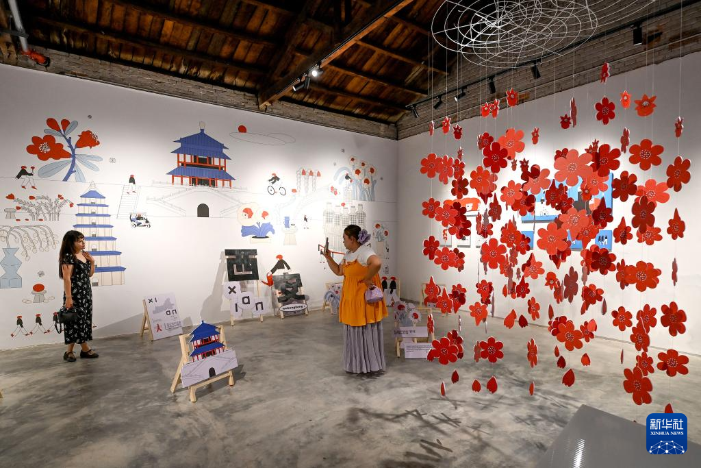 7月27日,游客在西仓市集文创公园参观展览。