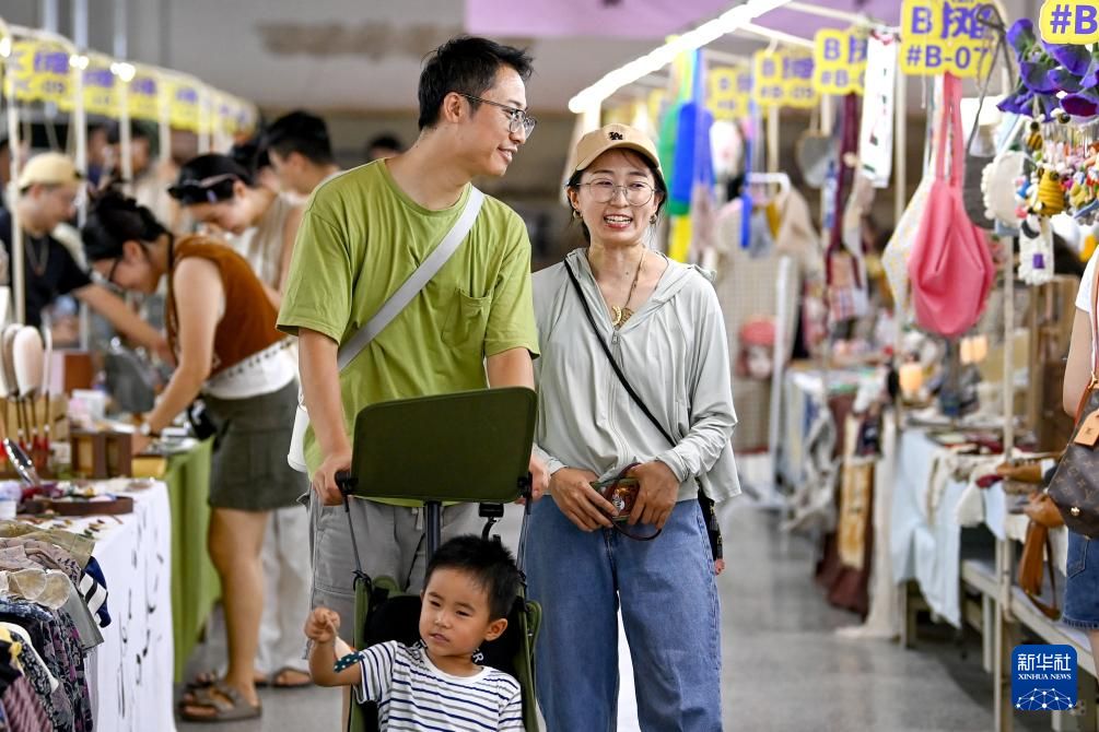 7月27日,游客在西仓市集文创公园内的“新二手市集”上参观。