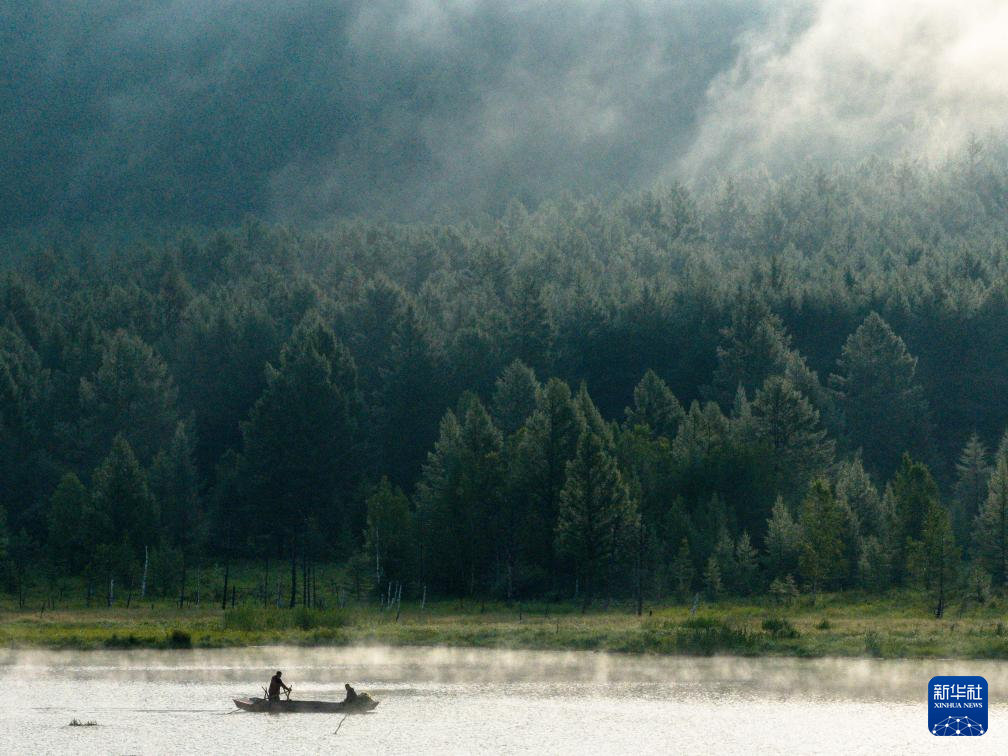 盛夏清晨,位于内蒙古兴安盟阿尔山市的乌苏浪子湖晨雾弥漫,飞鸟翔集,绘就一幅美丽的生态画卷。