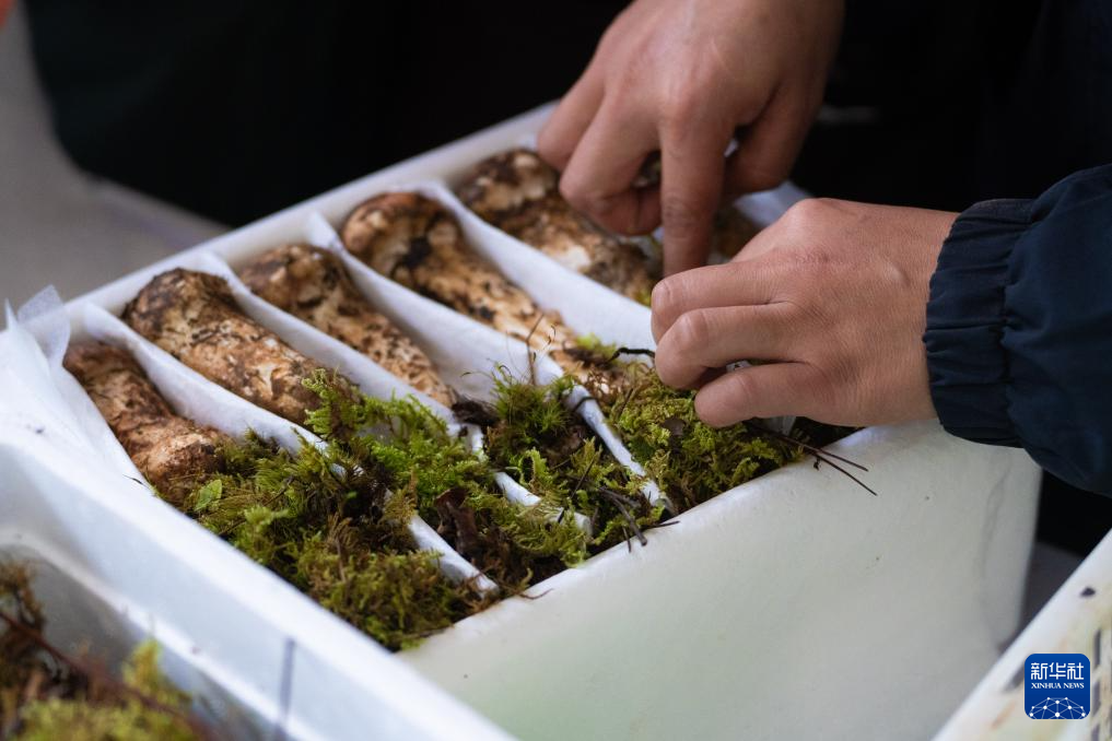 近年来,春批专注提升松茸品质,同时打造专属品牌。2024年,在他的推动下,吉迪村建成了集线下交易、线上直播、冷库保鲜功能于一体的村级松茸交易市场。吉迪村松茸的销路越来越广,不仅发往国内,还远销日本、韩国等地。据统计,2024年吉迪村的松茸交易量达300吨。