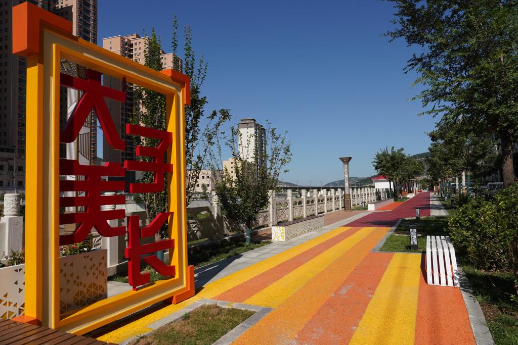 子长城区秀延河岸边的健身绿道。新华社记者 樊雨晴 摄