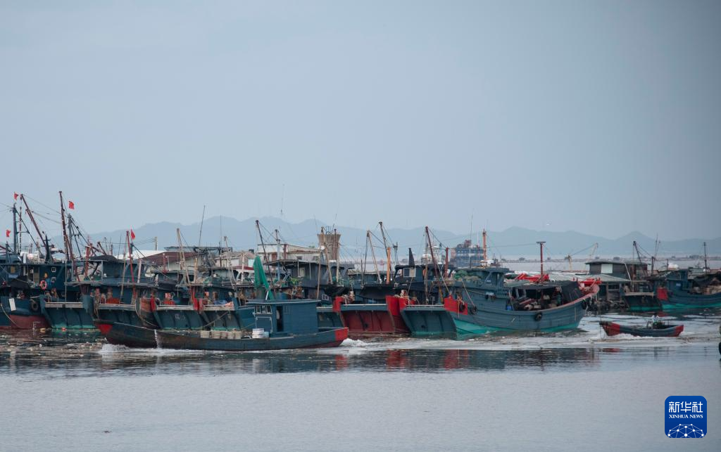 8月13日,两艘渔船驶入位于广东省潮州市饶平县汫洲镇的三百门渔港躲避台风。