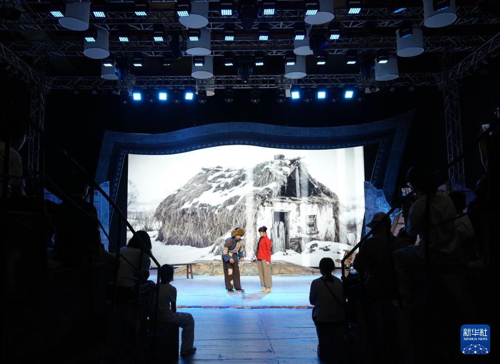 8月7日,游客在长影旧址博物馆观看电影歌舞剧《白毛女》。