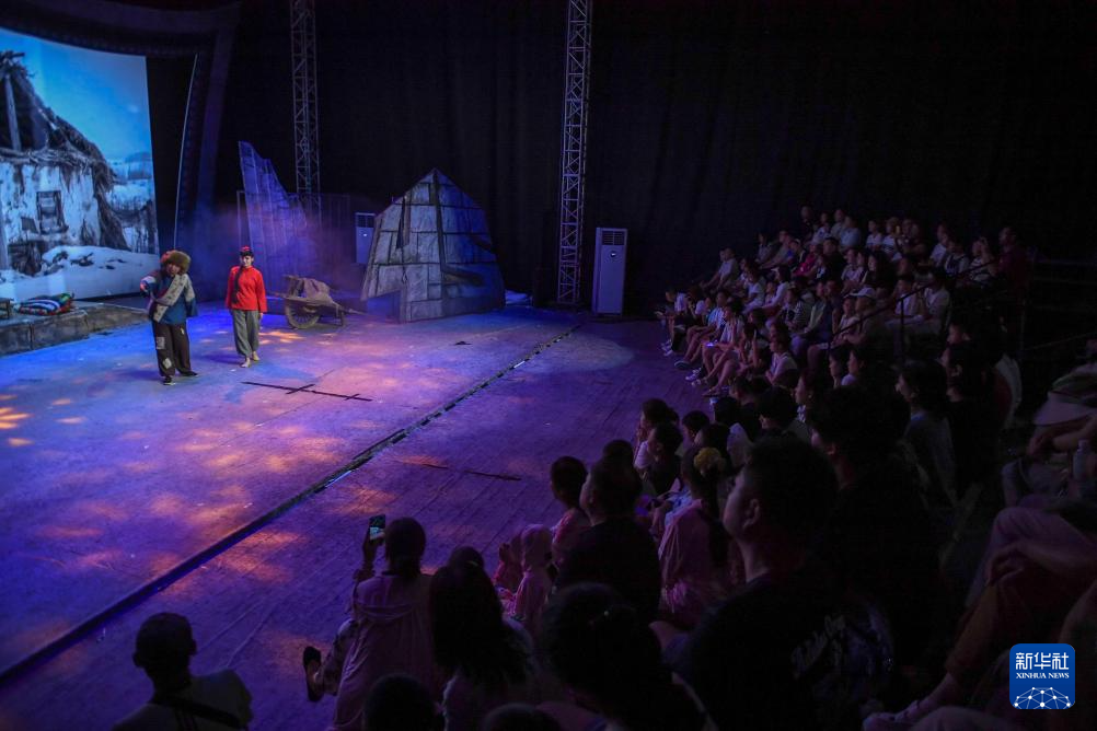 8月7日,游客在长影旧址博物馆观看电影歌舞剧《白毛女》。