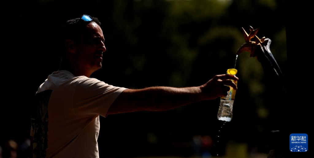 8月12日,一名男子在英国伦敦绿园饮水处取水。
