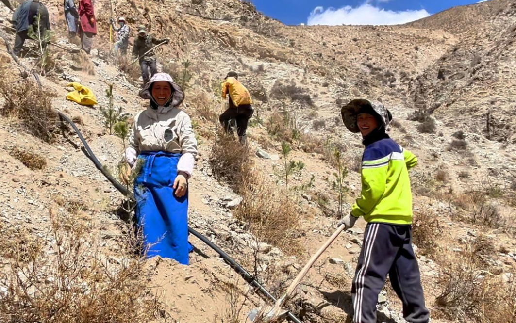 2024年,乃东区大力推广“以工代赈”模式,积极引导周边农牧民群众参与植树造林,确保参与南北山绿化工程的山南籍务工人员比例不低于70%。