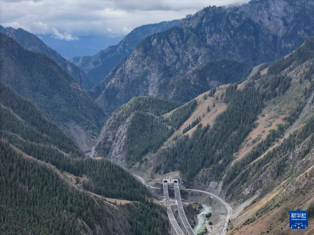 这是8月19日拍摄的新疆乌尉高速公路前峡1号隧道北端(无人机照片)。