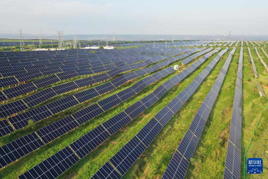 这是7月30日拍摄的天骄绿能50万千瓦采煤沉陷区生态治理光伏发电示范项目区(无人机照片)。