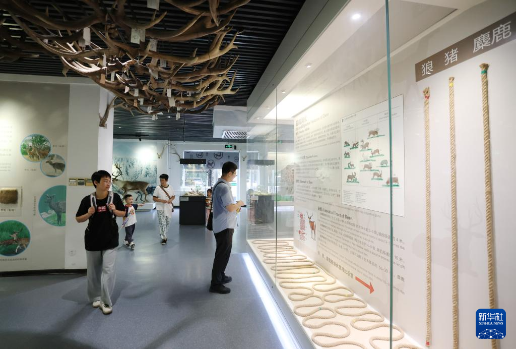 8月24日,游客在北京南海子麋鹿苑博物馆参观。