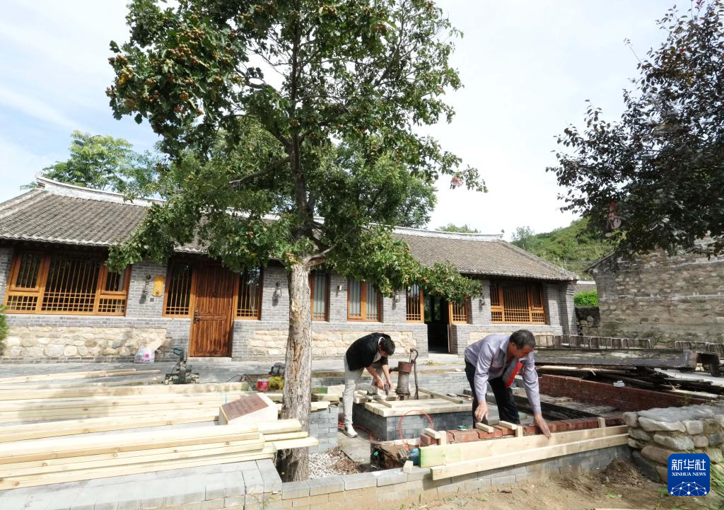 9月17日,工人在秦皇岛市抚宁区大新寨镇界岭口村一民宿改造工地施工。