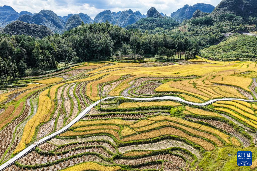 近日,贵州省黔南布依族苗族自治州长顺县12万亩水稻喜获丰收。农户们抢抓晴好天气,开镰收割,一派繁忙景象。
