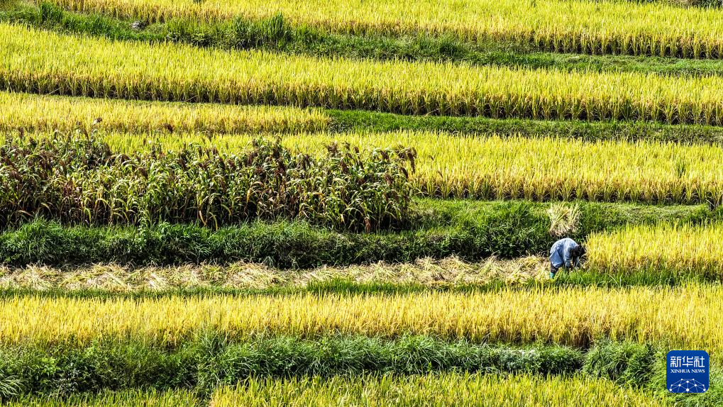 近日,贵州省黔南布依族苗族自治州长顺县12万亩水稻喜获丰收。农户们抢抓晴好天气,开镰收割,一派繁忙景象。