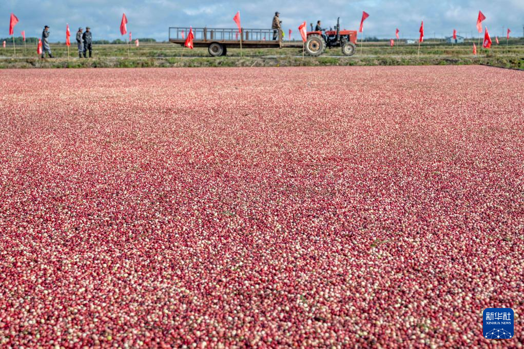 9月21日,“庆农业丰收 享美好生活”蔓越莓丰收节在我国“东极”黑龙江抚远市举行,4200亩的抚远市蔓越莓种植基地迎来采收季。