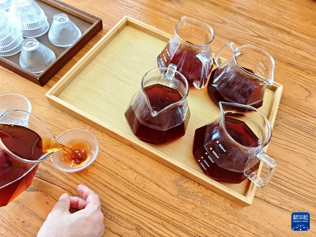 9月20日,游客在普洱市思茅区南屏镇南岛河村白沙坡小组的“美丽星村·有风咖谷”品尝咖啡。