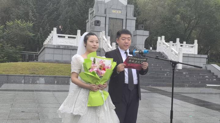 “今日我们以婚姻为名,向英烈致敬;明日,我们必以生命为笔,书写属于新时代的答卷。”新婚夫妇韩旭、李澳告诉记者,9·30烈士纪念日即将到来,他们以新婚夫妇的身份伫立于烈士碑前,这不仅是一场婚礼的起点,更是一场跨越时空的精神对话,以婚姻为誓,以生命为诺,将个人幸福融入国家记忆,让红色基因在血脉中永续流淌。