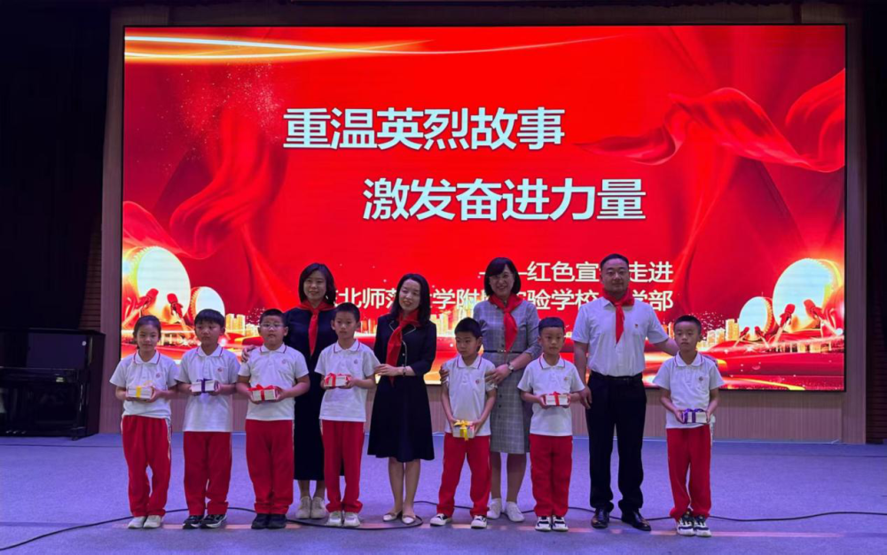 ↑长春烈士陵园工作人员走进东北师范大学附属实验学校小学部开展红色宣讲活动。长春烈士陵园提供
