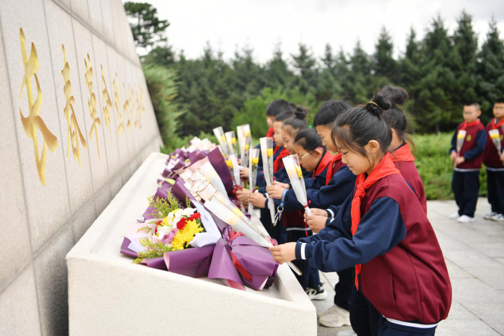↑9月30日,长春市小学生到长春烈士陵园献花。长春烈士陵园提供