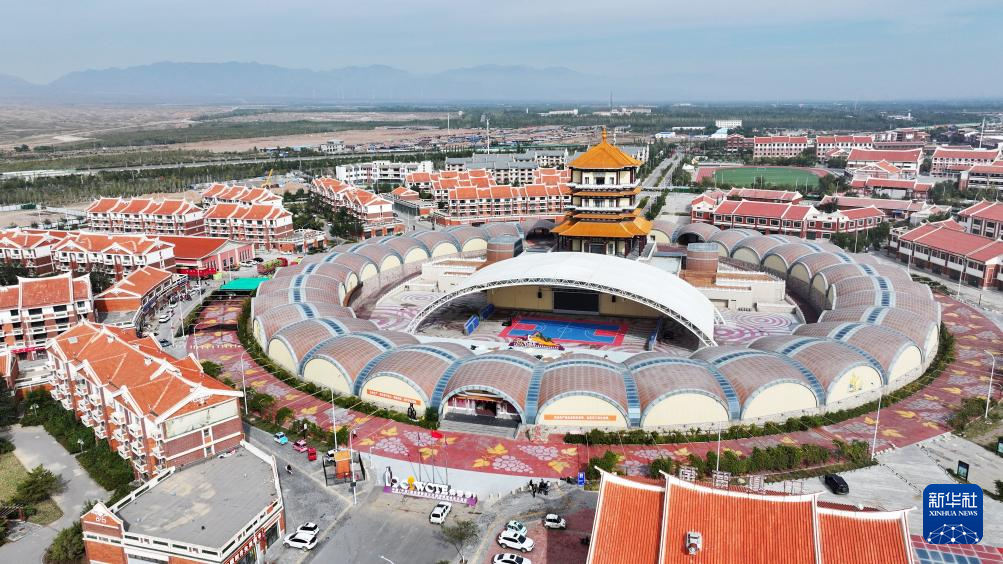 位于银川市永宁县闽宁镇的贺兰红酒庄(无人机照片,10月14日摄)。