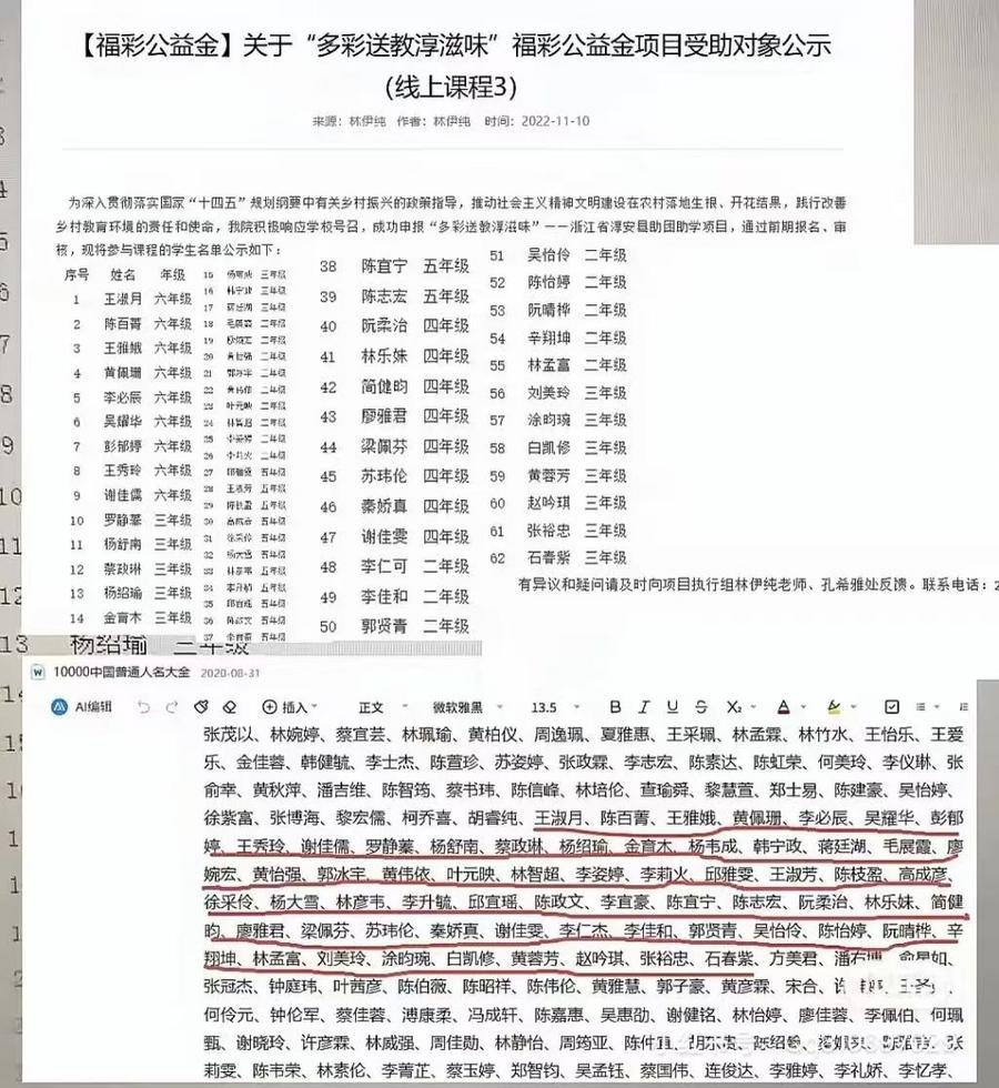 2022年11月,作为“线上课程受助对象”,他们出现在杭州师范大学人文学院的福彩公益金项目里。