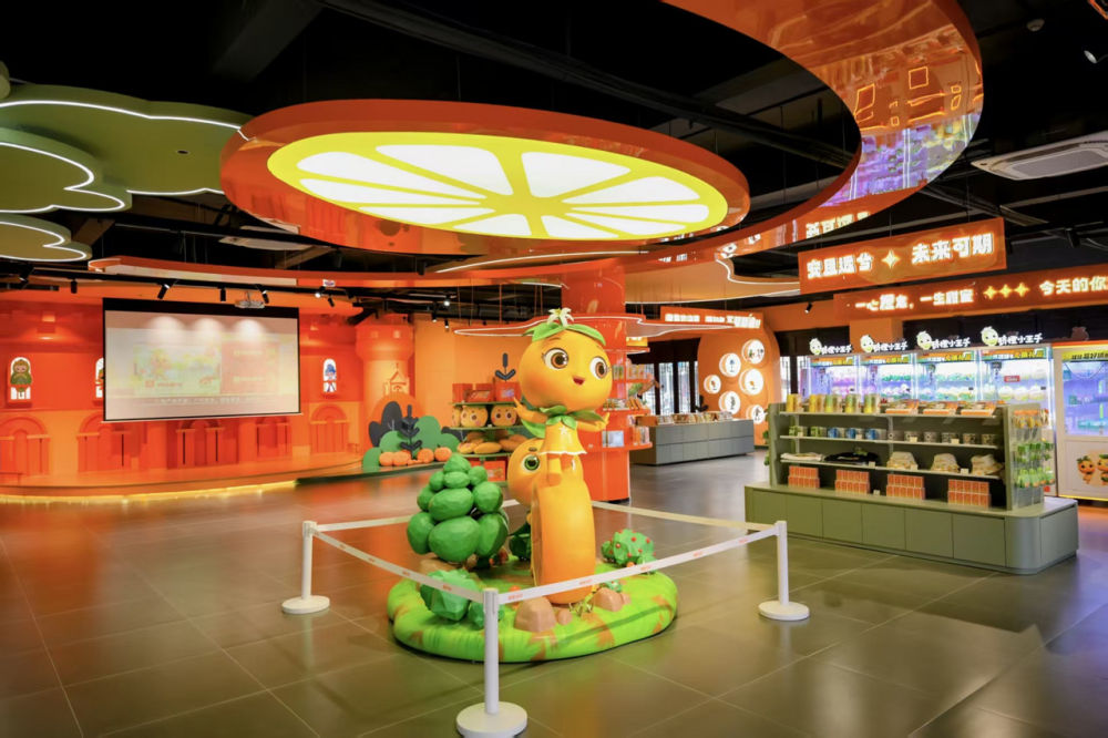 为进一步放大IP效应,安远县还建设了《脐橙小王子》主题馆,集中展示各式各样的脐橙文创产品。同时,同步推进IP衍生品开发与授权运营。截至目前,已研发橙形玩具、IP主题服饰、文具、生活用品等200余款衍生产品。印着“脐橙小王子”卡通形象的脐橙礼盒,在深圳、香港等地的高端商超供不应求。