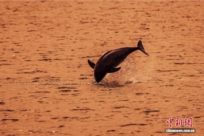 长江宜昌段,江豚跃出水面。(资料图)舒仁庆 摄