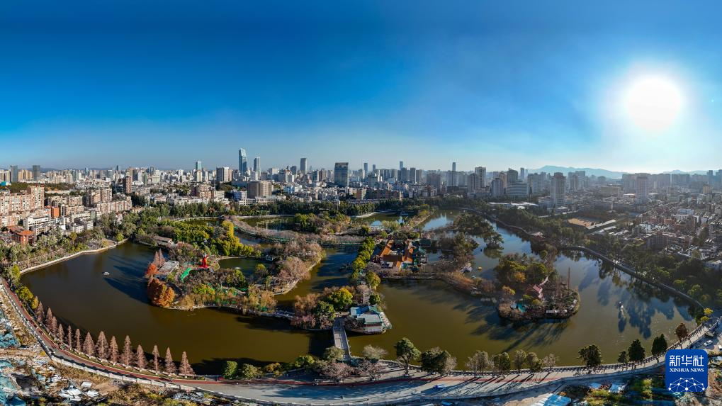 1月13日拍摄的翠湖一景(无人机全景照片)。