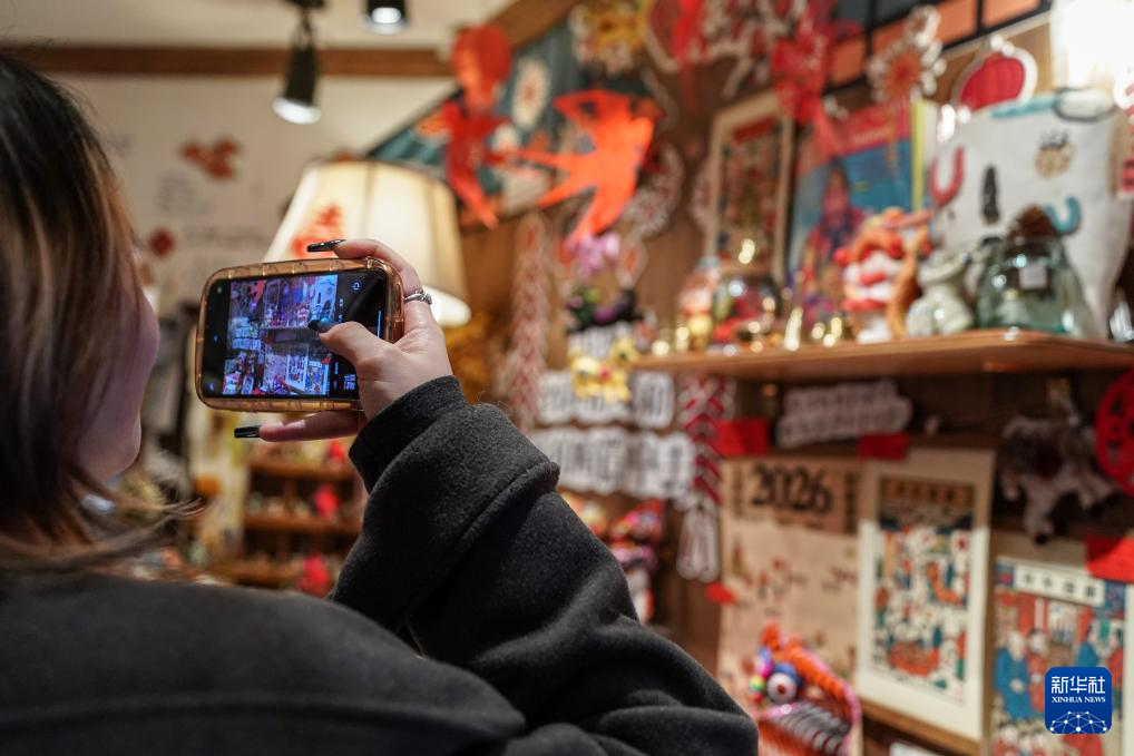 1月13日,游客在翠湖畔的特色书店拍照打卡。