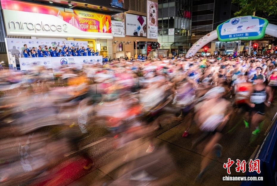 1月18日,2026年渣打香港马拉松开跑,约7.4万名跑者参加全程马拉松、半程马拉松、10公里跑等各组别赛事。图为参加半程马拉松的选手们从位于香港尖沙咀弥敦道的起点出发。