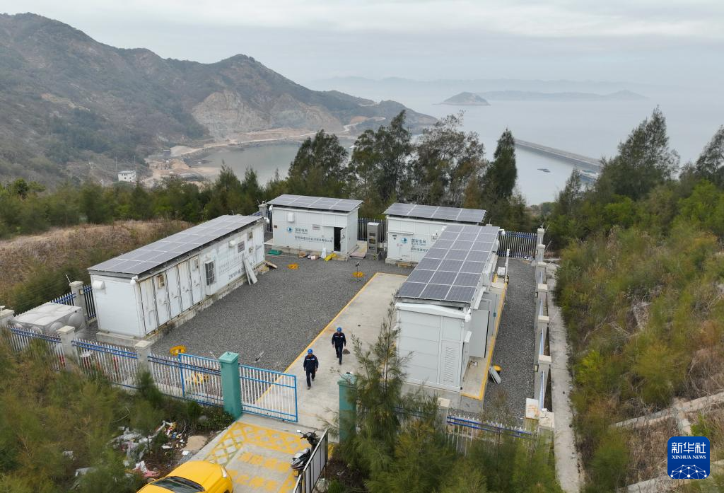 1月26日,刘江平(左)和同事蒋立云在霞浦县海岛乡微电网巡查(无人机照片)。
