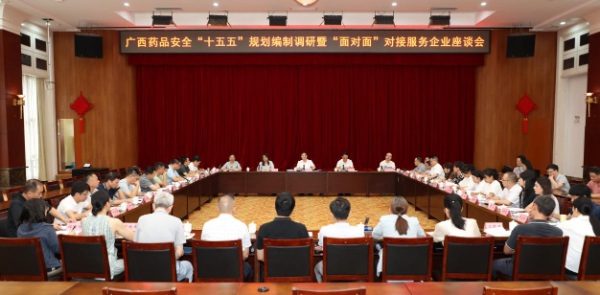 2025年8月15日,广西药品安全“十五五”规划编制调研暨“面对面”对接服务企业座谈会在南宁召开。(广西药监局供图)
