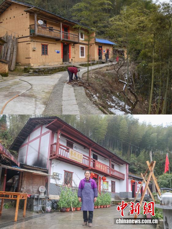 2016年至2026年,是江西省井冈山市神山村振兴蝶变的十年。这座坐落于革命老区大山深处的村庄,曾是典型的“偏”“远”“穷”小山村,发展步履维艰。十年间,神山村实现美丽蜕变,路通景美、产业兴旺,外出村民纷纷返乡创业,四方游客慕名而至,2025年神山村村集体经济经营性收入突破百万元人民币。如今的神山村成为了全国乡村旅游重点村,更被列为首批“全国脱贫攻坚考察点”,走出了一条红绿融合、产业富民的乡村振兴之路。上图为2016年1月26日,神山村村民彭夏英家的土坯房(井冈山市委宣传部供图),下图为2026年2月1日,彭夏英站在自家新房前。2016年,彭夏英开了神山村第一家农家乐,在她的带动下,不少村民都开始搞农家乐,大家的收入逐渐增加,彭夏英也先后获得了“全国三八红旗手”“全国脱贫攻坚先进个人”等荣誉称号。(拼版图)