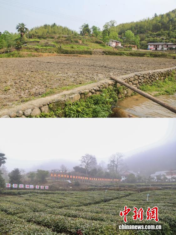 2016年至2026年,是江西省井冈山市神山村振兴蝶变的十年。这座坐落于革命老区大山深处的村庄,曾是典型的“偏”“远”“穷”小山村,发展步履维艰。十年间,神山村实现美丽蜕变,路通景美、产业兴旺,外出村民纷纷返乡创业,四方游客慕名而至,2025年神山村村集体经济经营性收入突破百万元人民币。如今的神山村成为了全国乡村旅游重点村,更被列为首批“全国脱贫攻坚考察点”,走出了一条红绿融合、产业富民的乡村振兴之路。上图为2016年4月19日,神山村村里的低产田(井冈山市委宣传部供图),下图为2026年2月1日,神山村村里的井冈红神山茶基地。神山村采取“合作社+基地+脱贫户”的经营模式,目前种有茶叶200亩、黄桃460亩,实现“家家有产业、户户是股东、人人有收入”。2025年,神山村村民人均可支配收入达3.6万元人民币。(拼版图)
