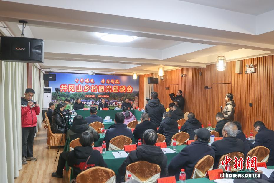 2016年至2026年,是江西省井冈山市神山村振兴蝶变的十年。这座坐落于革命老区大山深处的村庄,曾是典型的“偏”“远”“穷”小山村,发展步履维艰。十年间,神山村实现美丽蜕变,路通景美、产业兴旺,外出村民纷纷返乡创业,四方游客慕名而至,2025年神山村村集体经济经营性收入突破百万元人民币。如今的神山村成为了全国乡村旅游重点村,更被列为首批“全国脱贫攻坚考察点”,走出了一条红绿融合、产业富民的乡村振兴之路。图为2026年2月1日,在神山村神山乡村振兴学院举行的井冈山乡村振兴座谈会,知名党史专家、乡村振兴领域学者、井冈山精神研究专家、神山村村民代表同志等人,聚焦井冈山精神、湘赣边革命老区乡村的发展巨变与时代新貌,探讨井冈山精神的深刻内涵以及现实意义。
