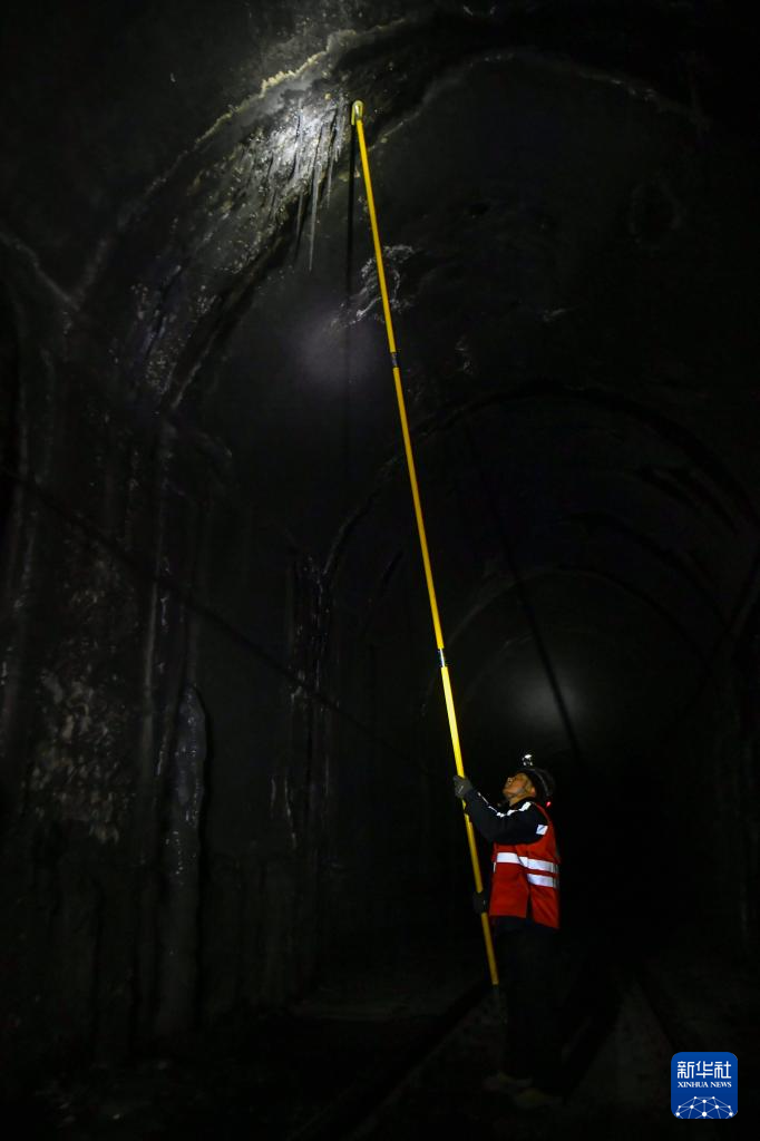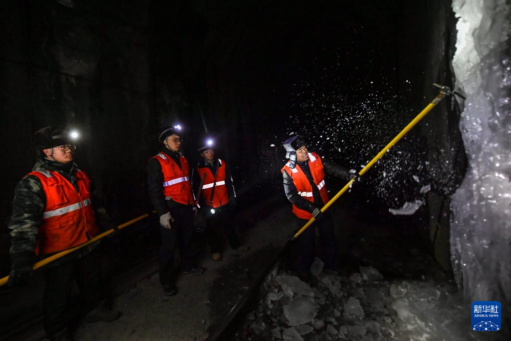 冬日,太行山深处昼夜温差显著,铁路隧道容易出现渗水结冰现象,威胁运输安全,“打冰人”成为列车和乘客安全的守护者。