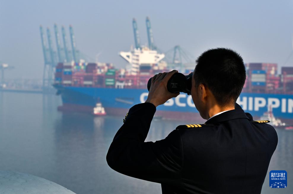 腊月里,渤海湾畔寒意十足。天津港引航中心高级引航员孙勃与许钦平从码头出发,沿着约十米高的登船梯,登上全长261米的“中远海法”轮——他们的任务,是将这艘巨轮安全引领出港。