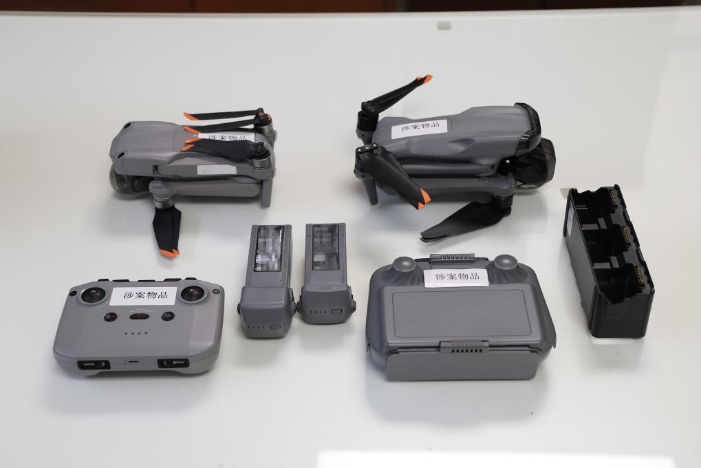 这是警方查获的无人机、遥控设备等涉案物品。新华社记者毛思倩 摄