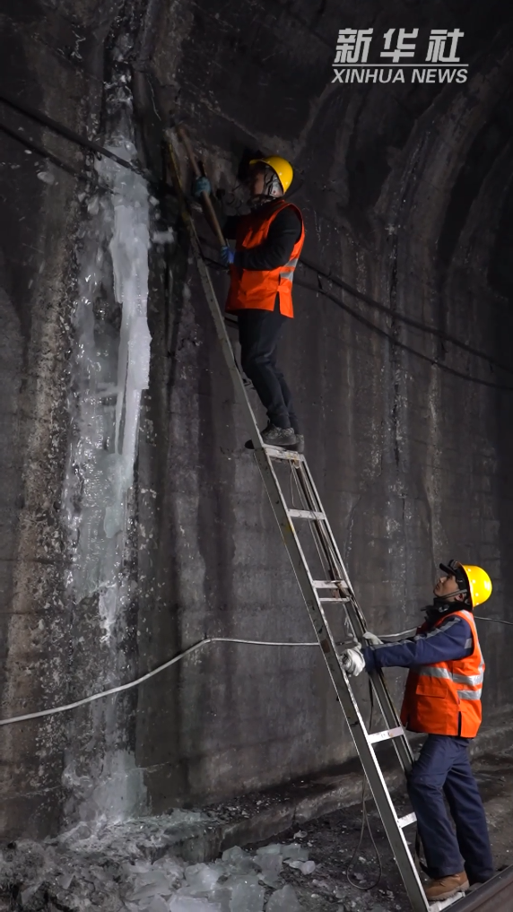 春节期间,太行山深处昼夜温差显著,铁路隧道容易出现渗水结冰现象,威胁运输安全。从11月进山,到第二年3月冰雪消融,“打冰人”每年都会在大山里坚守4个多月,守护着列车和乘客安全。记者跟随中国铁路太原局集团有限公司太原工务段的桥隧工师傅,体验作为“打冰人”的一天。