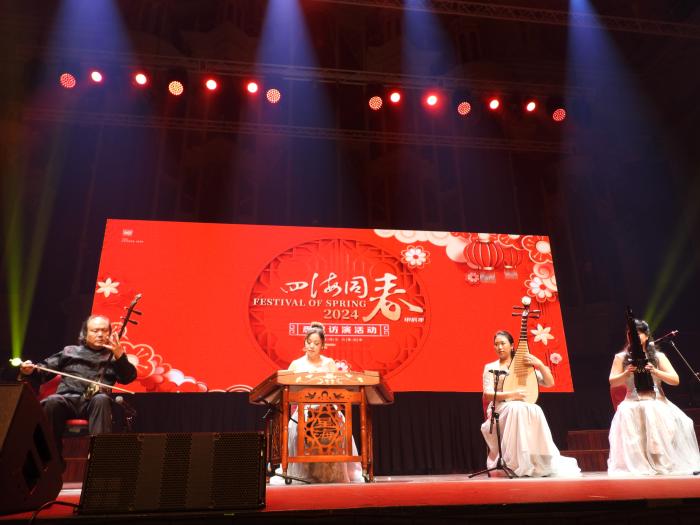 当地时间2024年2月21日,2024年“四海同春”访演活动在悉尼上演。图为民乐演奏《剪羊毛》。 中新社记者 顾时宏 摄