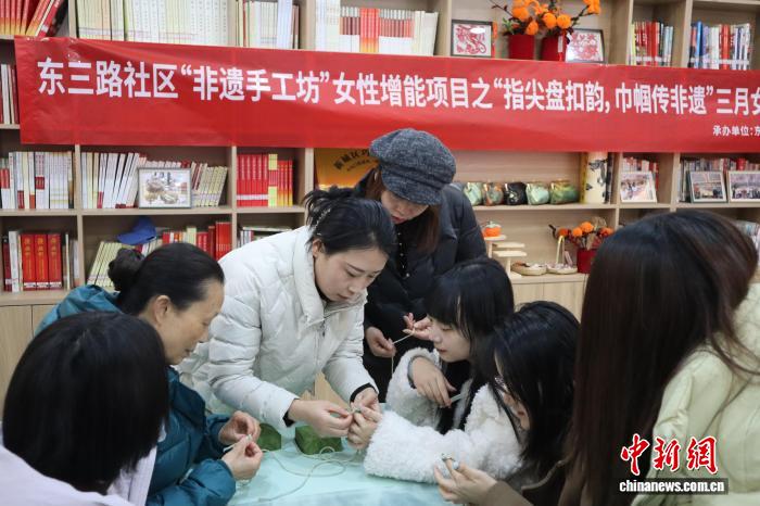 图为陕西西安一社区内,妇女正在学习盘扣制作技艺。 李一璠 摄