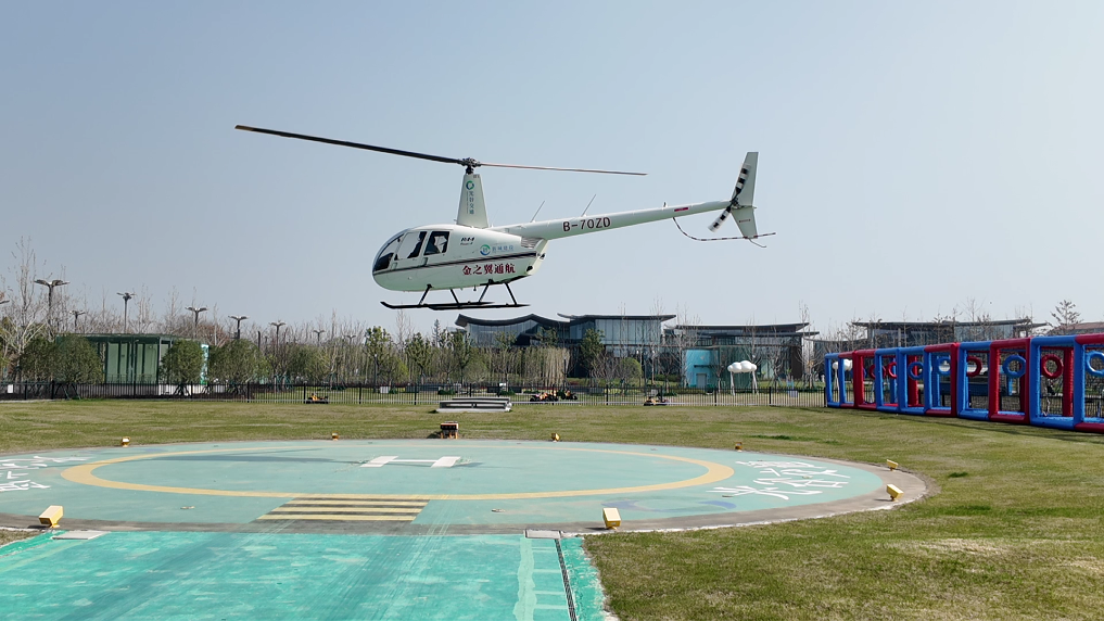 游客在中国光谷未来荟低空文旅产业示范园体验直升机空中观光项目。新华社记者潘志伟 摄