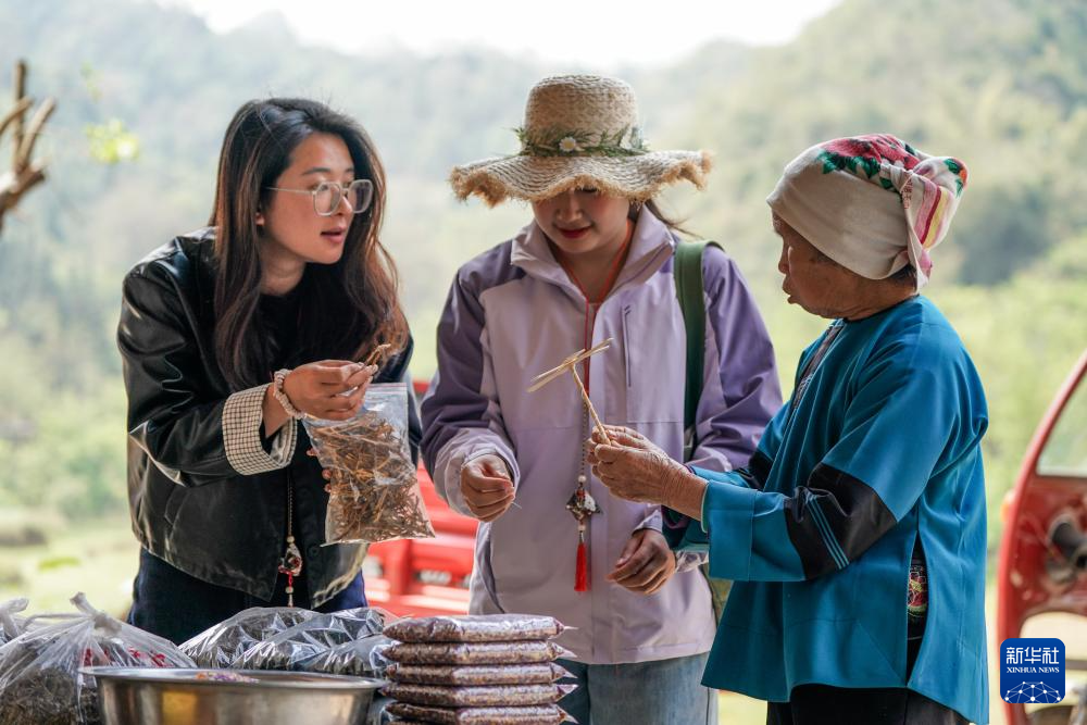 3月17日,村民在坝美景区向游客展示当地特产和手工艺品。